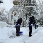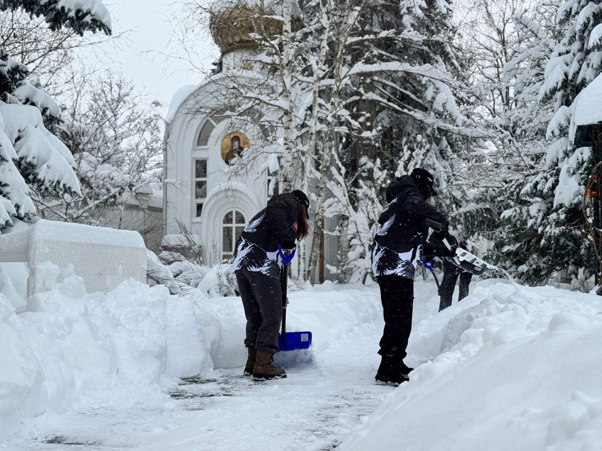 Несмотря на обильные снегопады, жизнь в Покровском приходе не останавливается, идет подготовка к Рождеству. С 31 декабря здесь ведутся работы по расчистке территории от снега, которые продолжаются и по сей день. Четверо мужчин под руководством сотрудника храма Николая Бескова прокапывают дорожки, причем трудились они даже в новогоднюю ночь.