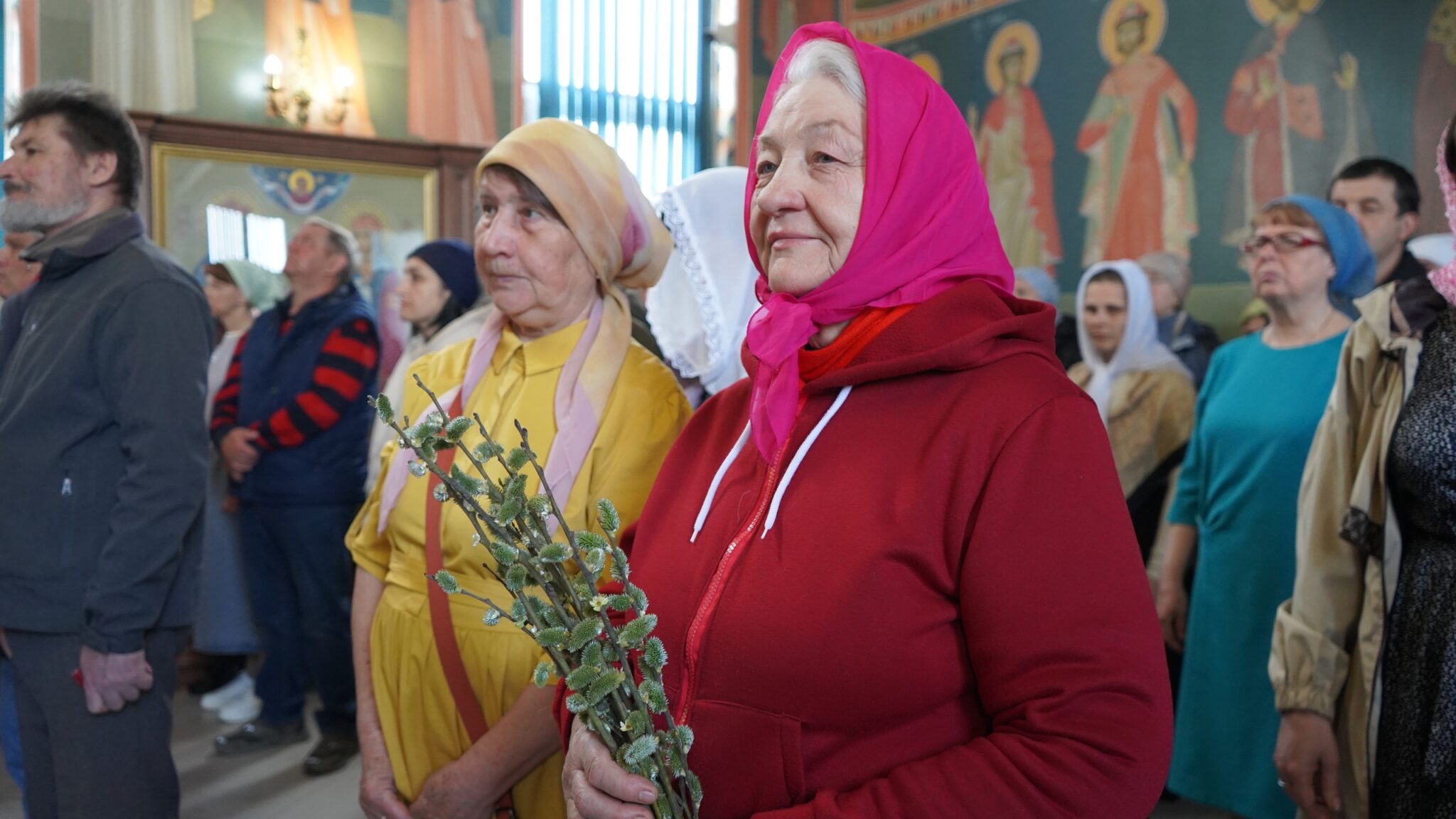 Праздник Входа Господня в Иерусалим больше известен как Вербное воскресенье. В Покровском приходе в руках у богомольцев освященные накануне букеты веточек вербы и цветов.